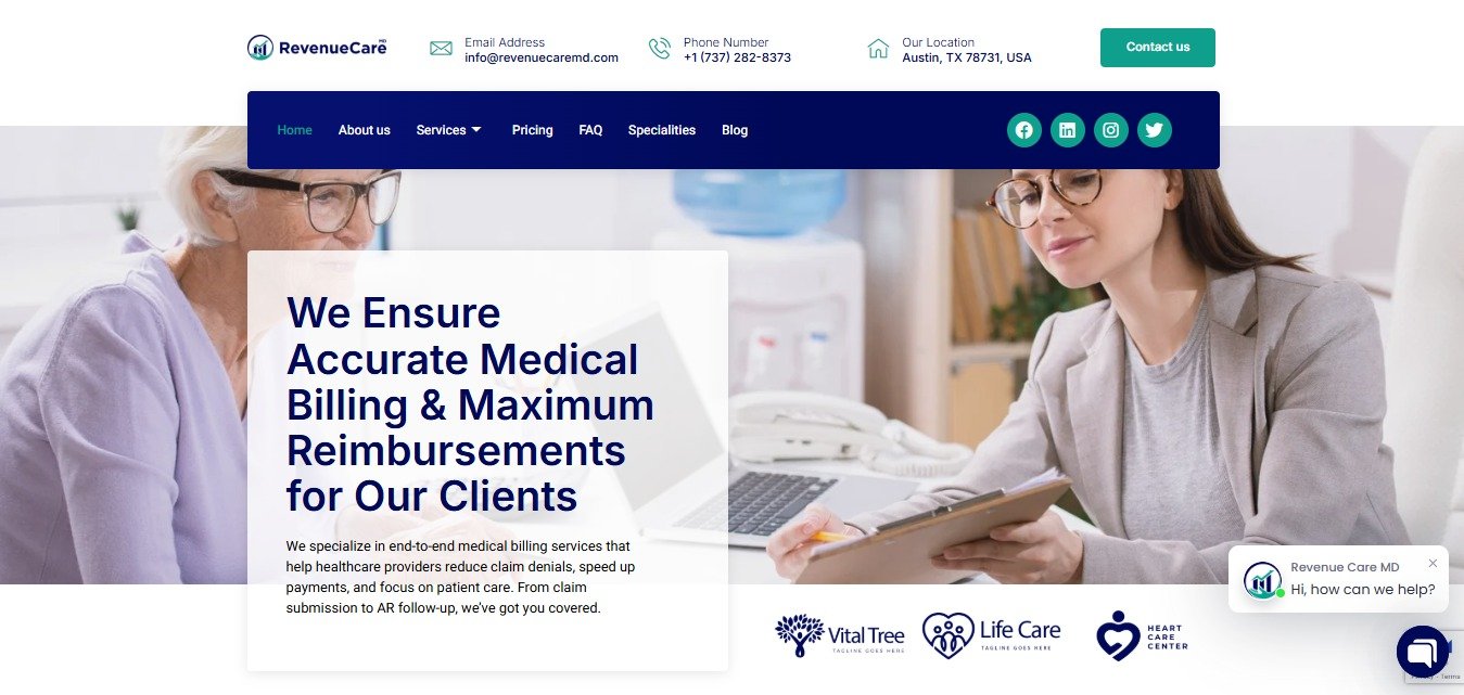 A clean and modern healthcare service website created to present medical billing and revenue management services.